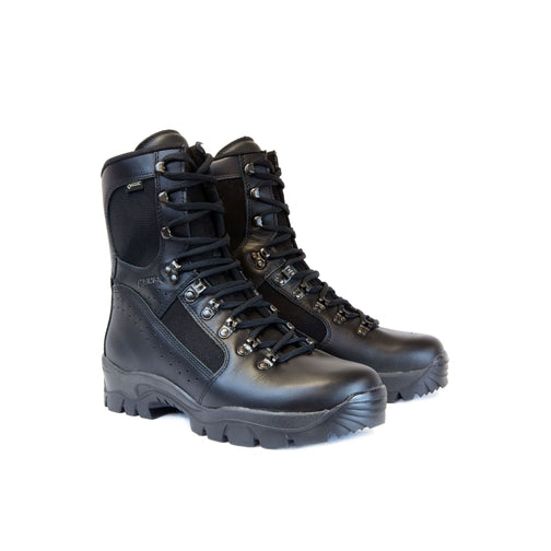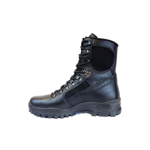Cordura venting sewn into the leather uppers allows the boots to breath more effectively, making the Kampfstiefel ideal for a temperate climate where the user is required to cover rougher terrain. Kampfstiefel has a strong fully orthotic polyamide shank that holds the foot in its correct shape and also offers a high level of penetration resistance through the sole by sharp objects. The Meindl Multigriff By Vibram® sole consists of firmer composition rubber with stabilizers and shock absorbers built into the one-piece design. These boots are 100% waterproof, Gore-Tex® lined and also include Meindl’s air pumping and moisture drainage system for the removal of perspiration or water.