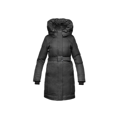 - Oversized down filled hood with adjustable straps for warmth and fit