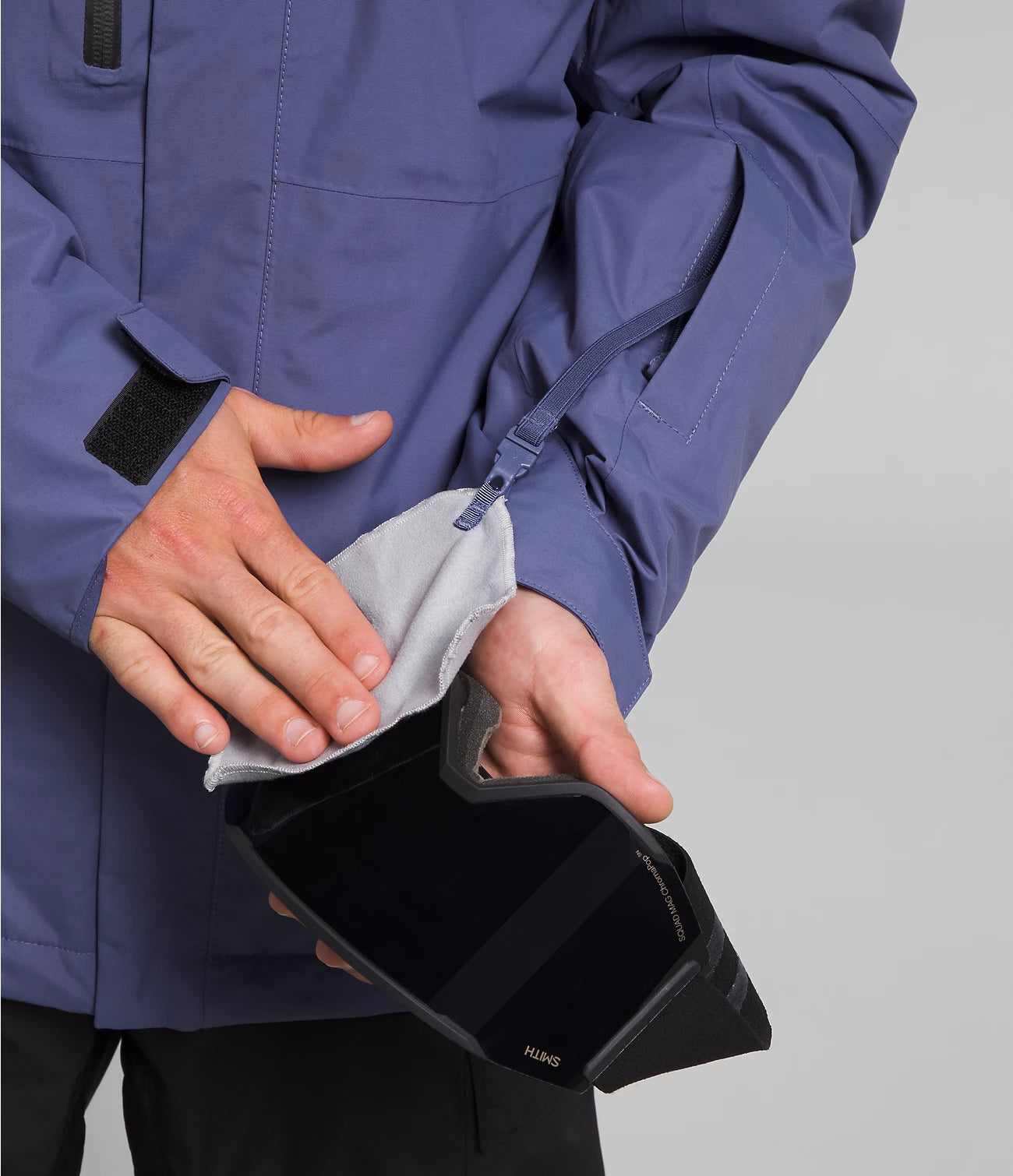 - Attached, helmet-compatible hood with a hidden cord-lock adjustment system