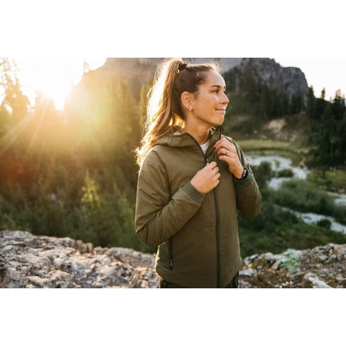 Stretchy where you need flex and insulated where you need to trap heat, the Women's Novus LT Hybrid is the perfect midlayer on frigid days and an ideal standalone when you’re getting after it. Stretch grid fleece and PrimaLoft® Silver insulation work together to provide comfortable warmth when the wet weather hits, and an attached elastic hood allows for extra coverage.
