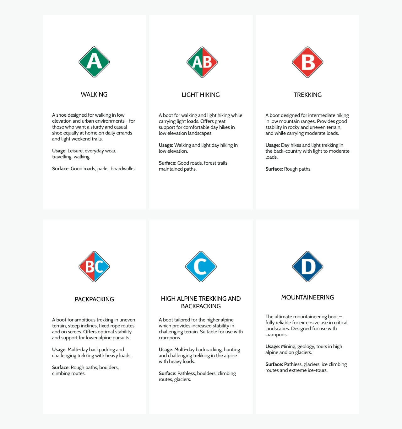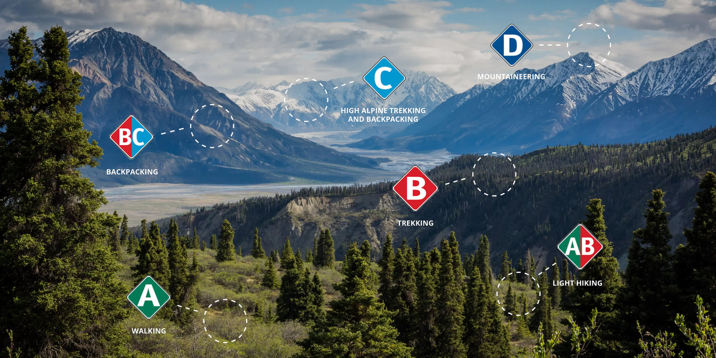 These are important questions that usually pop into your head when you are about to buy a new pair of shoes or boots. Since boots with different fields of application are constructed in different ways, Meindl has come up with specified terrain categories to help you choose the best boot for your activity and terrain.